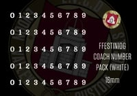 A sheet of White or Gilt and Black or Imitation Gilt (non shiny) numbers themed toward Ffestiniog Railway, on Transparent water slide decal paper.